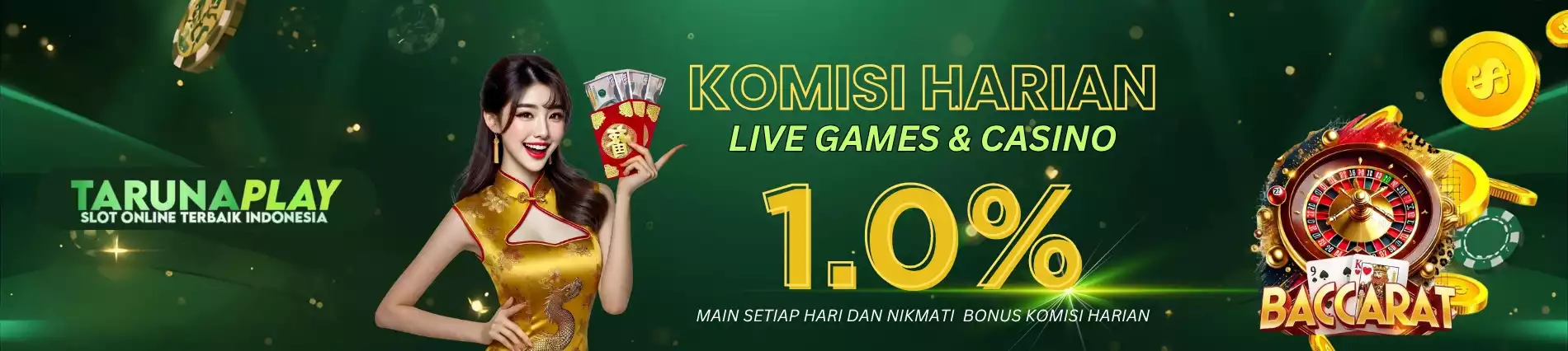 Bagi penggemar permainan meja, TARUNAPLAY menghadirkan live casino online dengan dealer cantik dan interaksi real-time. Tersedia berbagai permainan populer seperti Baccarat, Roulette, Blackjack, dan Dragon Tiger.